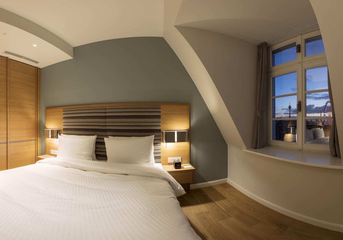 Die berühmte Einkaufsmeile Königsallee, kulturelle Einrichtungen wie die Kunstsammlung NRW und die Deutsche Oper am Rhein sowie internationale Top-Restaurants und Bars sind in wenigen Minuten zu Fuß zu erreichen.